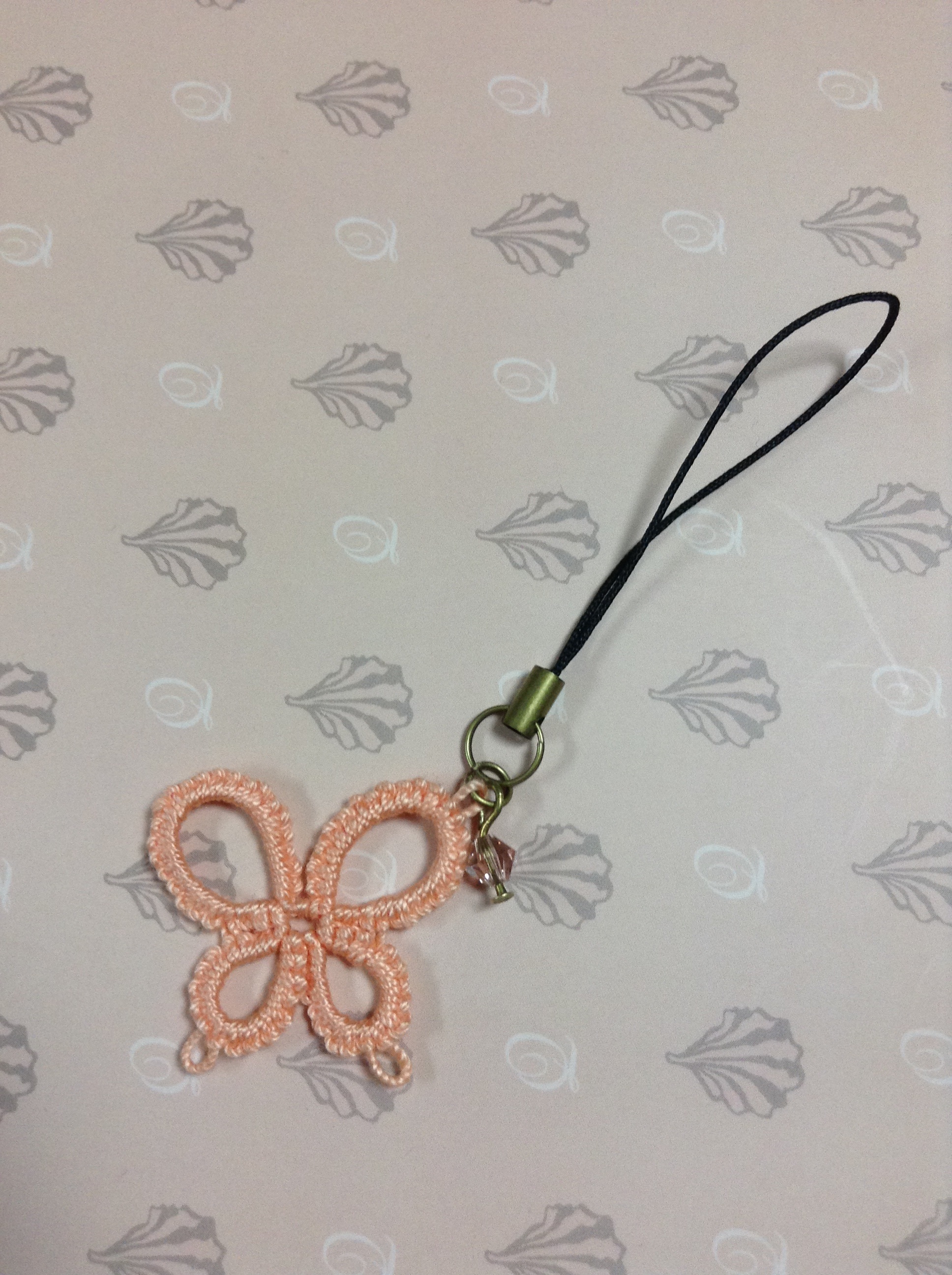 ちょうちょのモチーフに一目ぼれして、作ってみたストラップです!