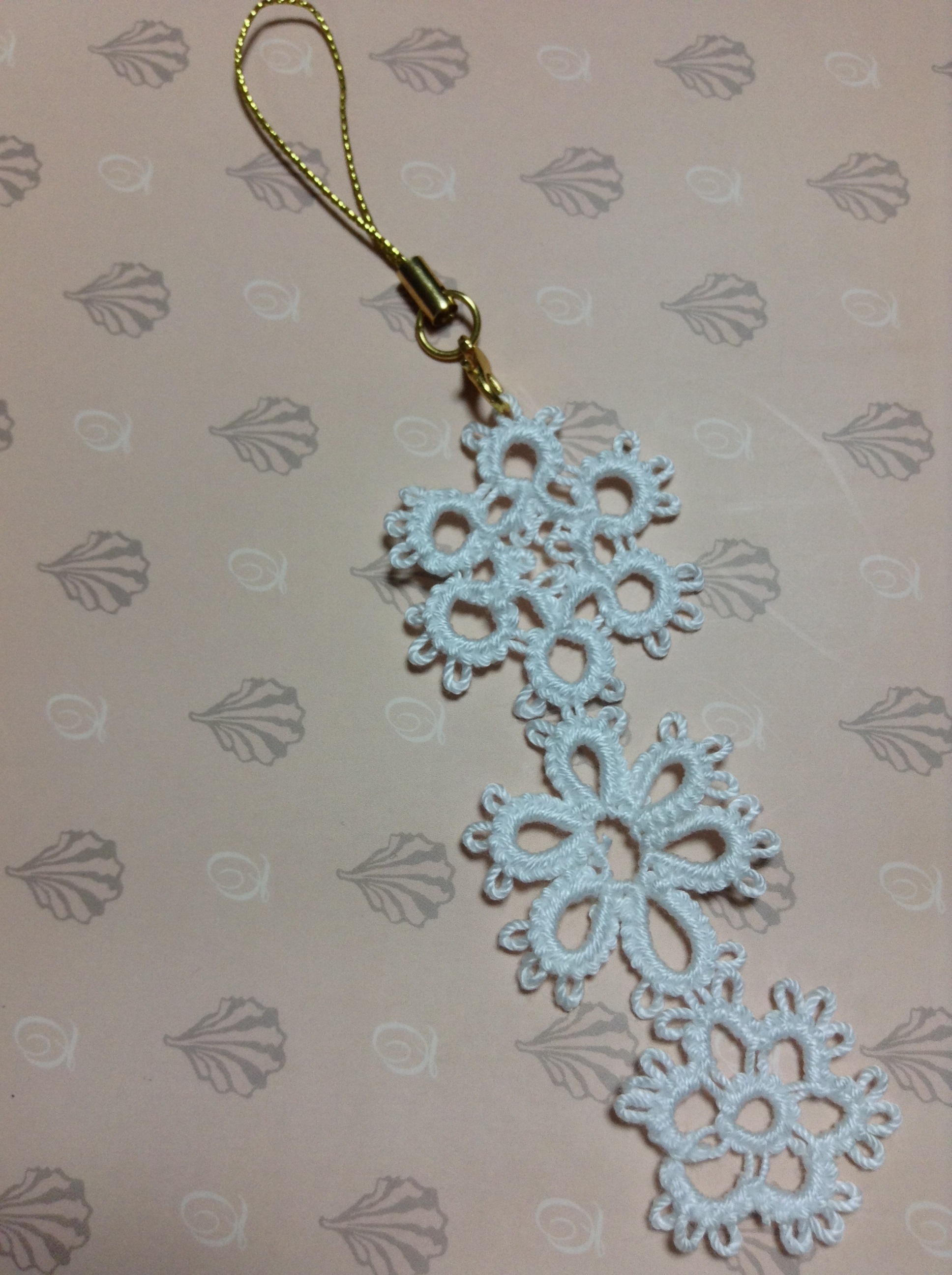 これまた「はじめてのタティングレース」よりストラップ。最初に買った本ということもあり、この本に載ってる作品はほぼ作ったかな。