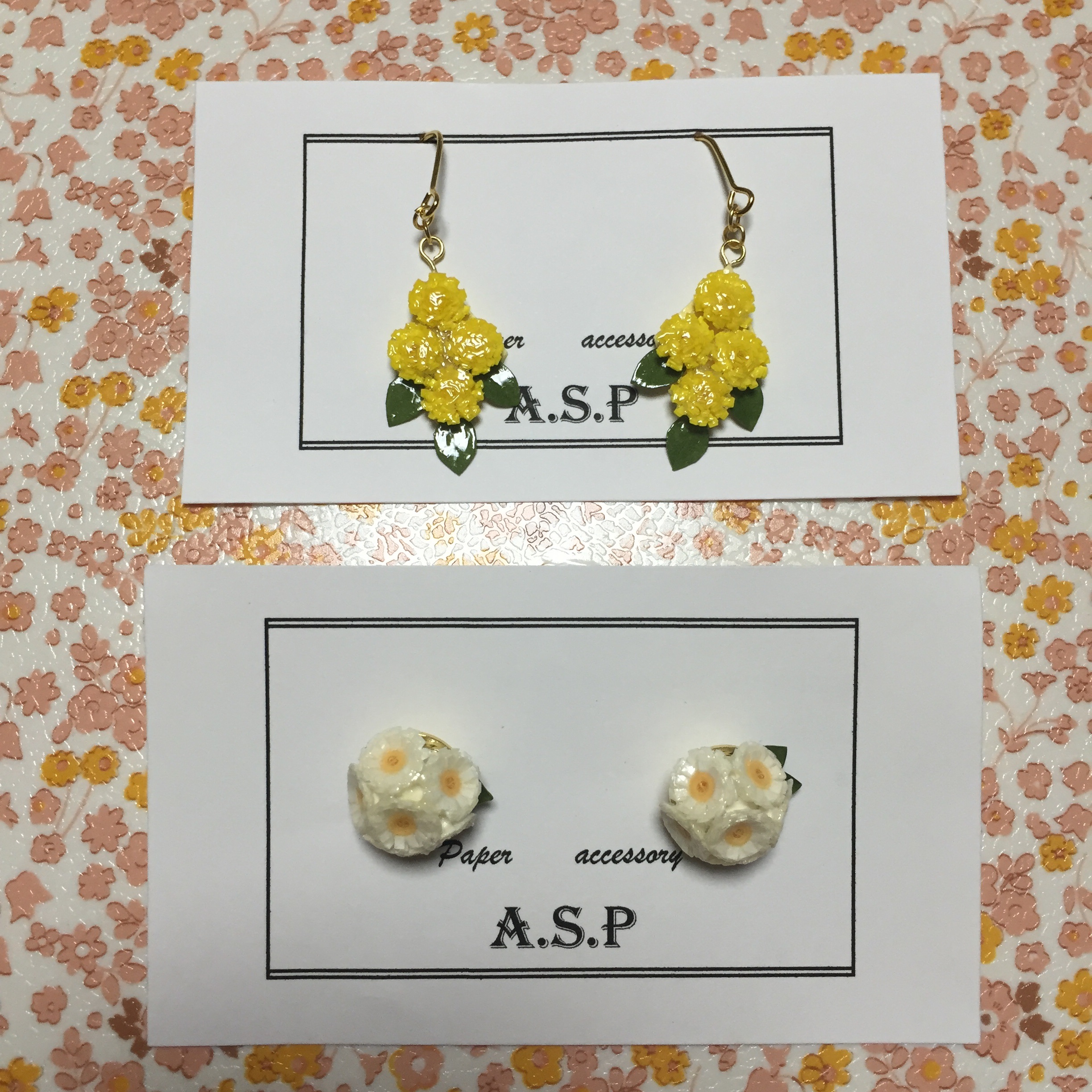 かわいいのがありすぎて、結局決めきれずミモザとブーケのピアスをお持ち帰り。