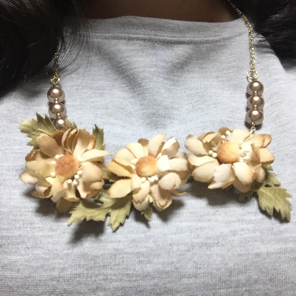 この日は、この前出来上がったフラワーモチーフのネックレスを付けてお出かけしてました。