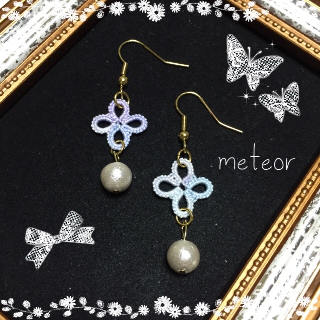 先日作った「あじさいのブローチ」の糸がシャトルに残っていたので、あまり糸でシンプルなピアスを作ってみました(*^^*)
