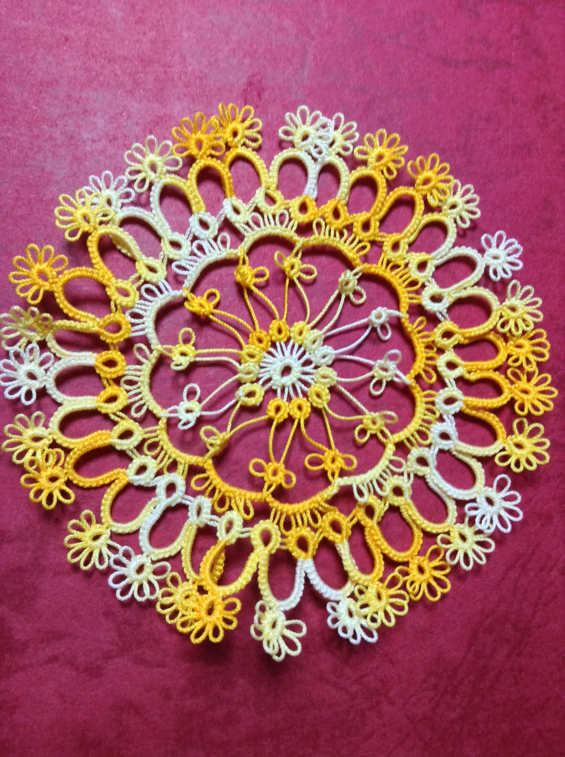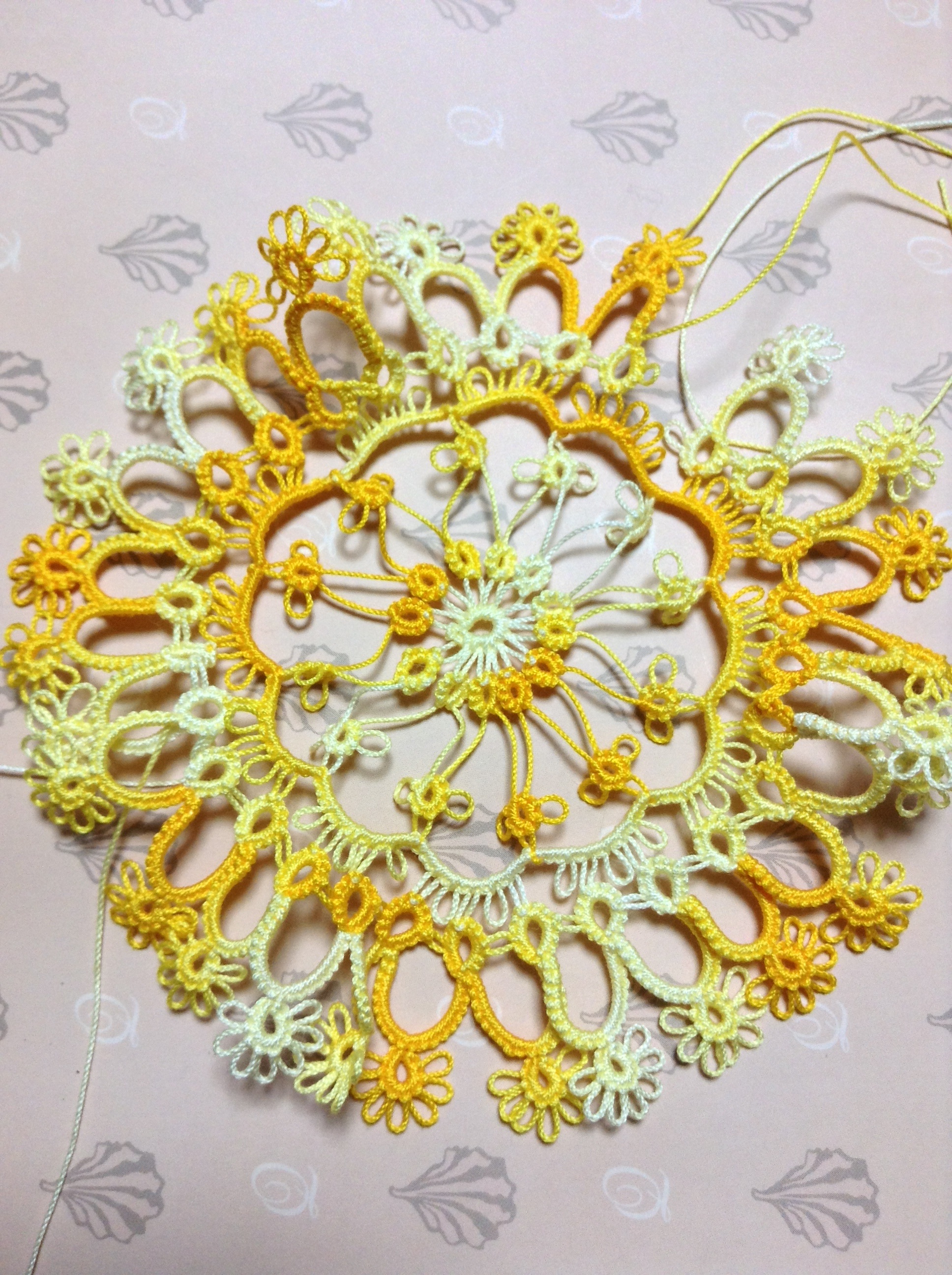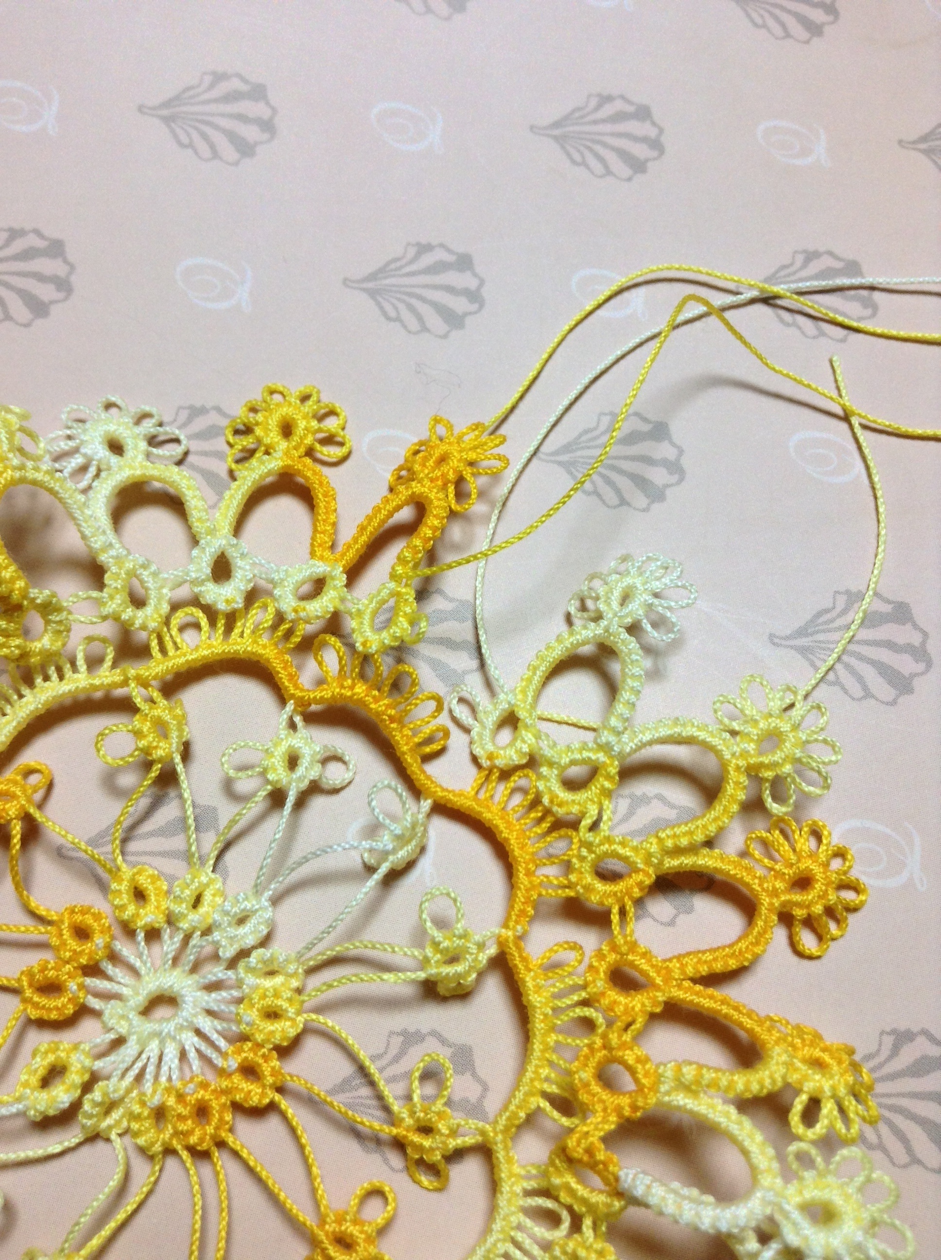 日に日に寒さが厳しくなってきて、疲れもたまる一方の12月ですが、毎日少しずつではありますがタティングレースをする日々です。