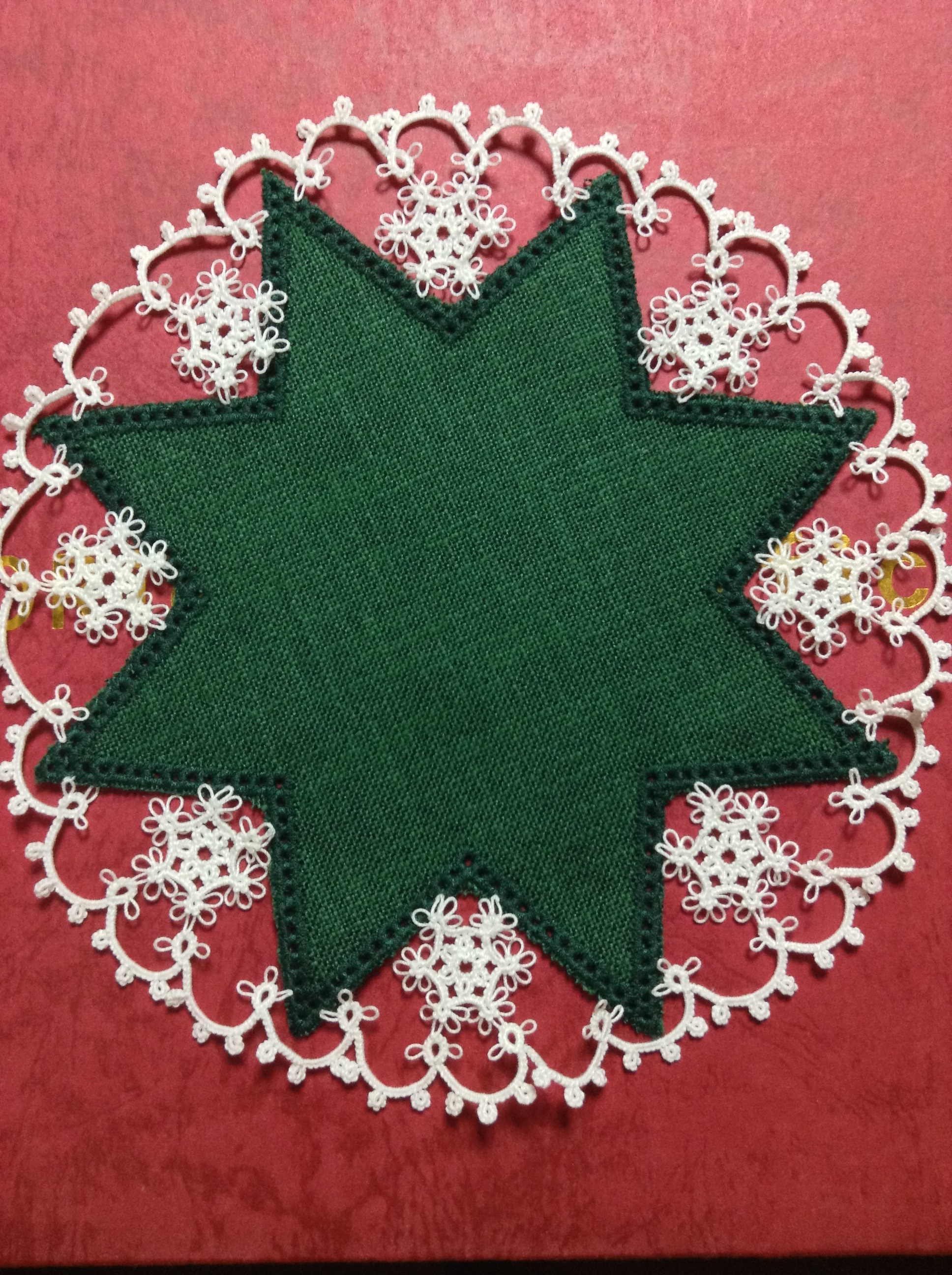 このドイリーが載っている「暮らしの中のタティングレース」にクリスマスページがあったので、時期的にピッタリだと思って♪