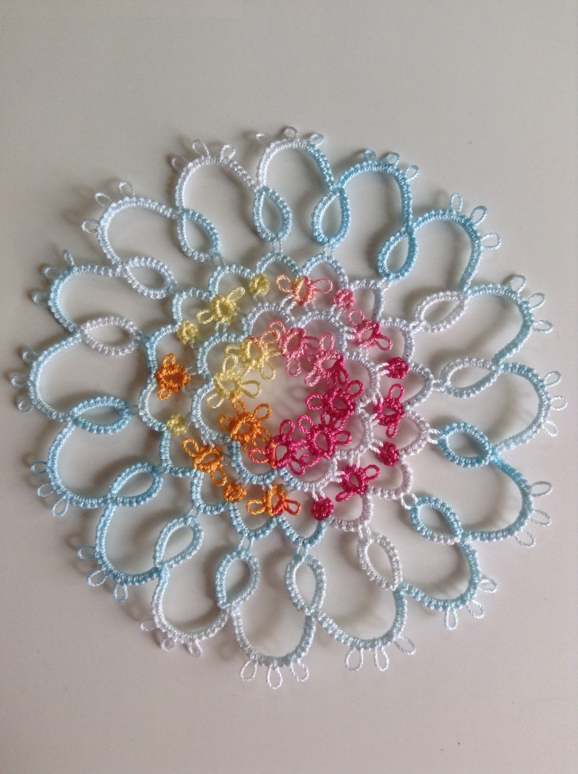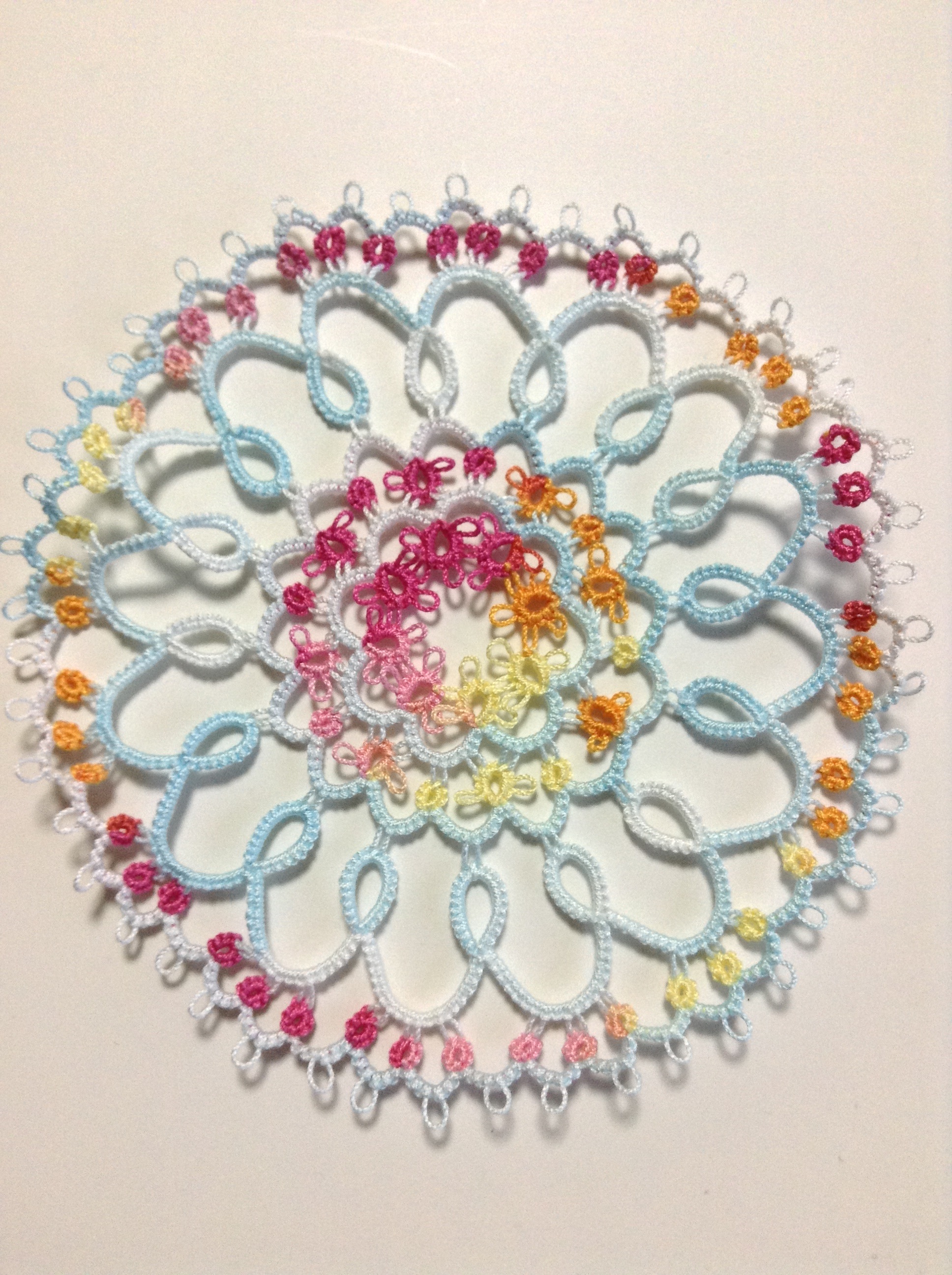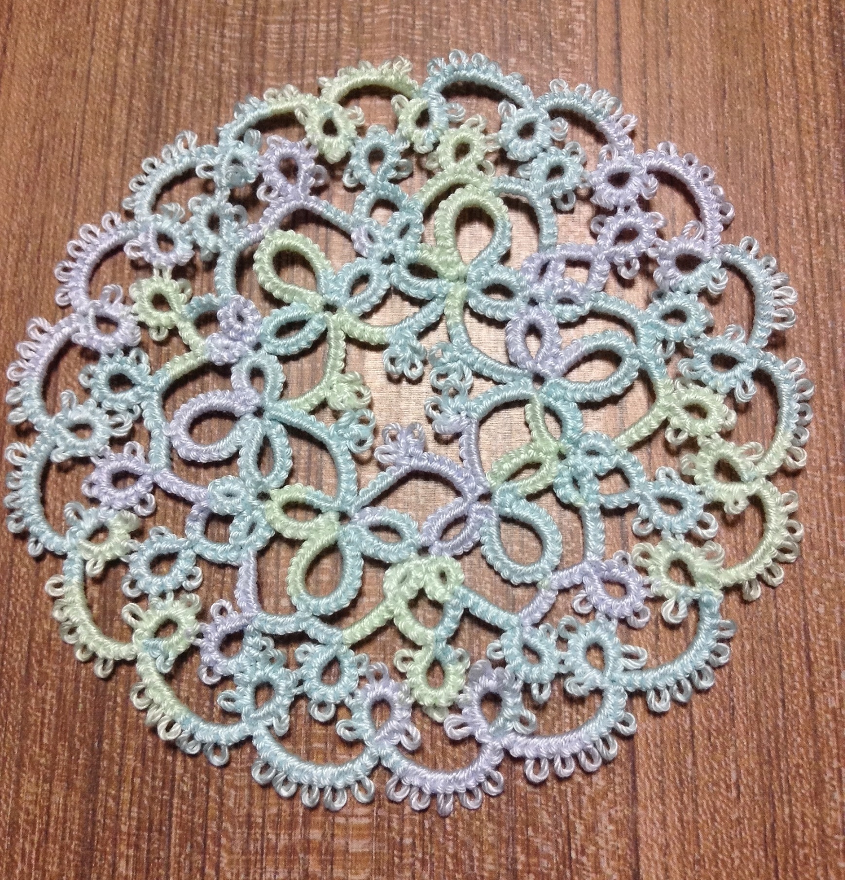 前回のミニドイリーを編んだ時に糸がシャトルに余っていたので、それを使い切る目的もあったんですが、想像以上にかわいくできて大満足♪