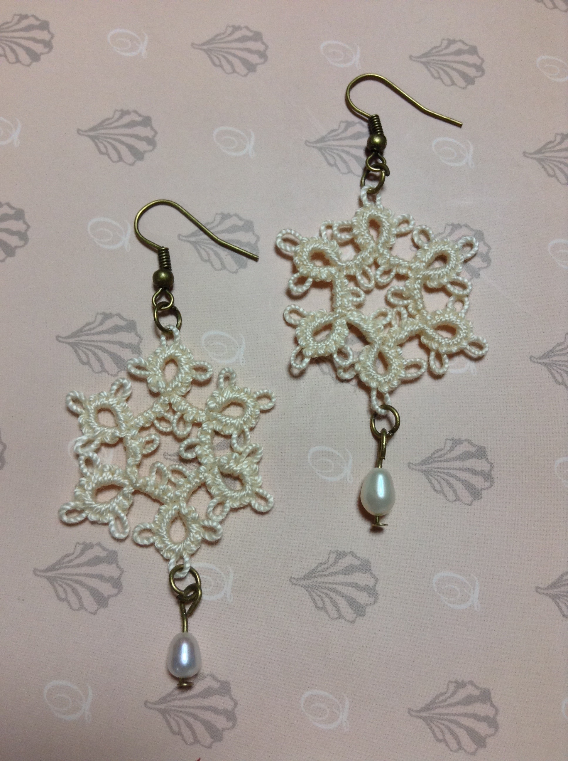 このころはまだモチーフを固めるってことも考えてなくて、実際つけてると結構ふにゃふにゃしちゃうのですが、そんなところもまたレース糸の魅力ですね♪